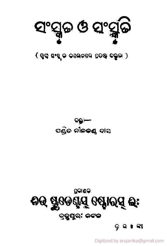 | 1562 | | Sanskruta O Sanskruti (N Das, 1951) fw | | pdf | | nilakantha-authored-books odia-language | |