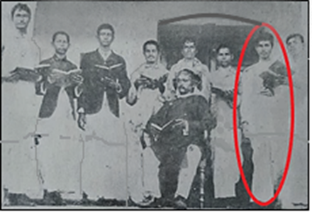 Student Nilakantha (in red circle) with Headmaster and others